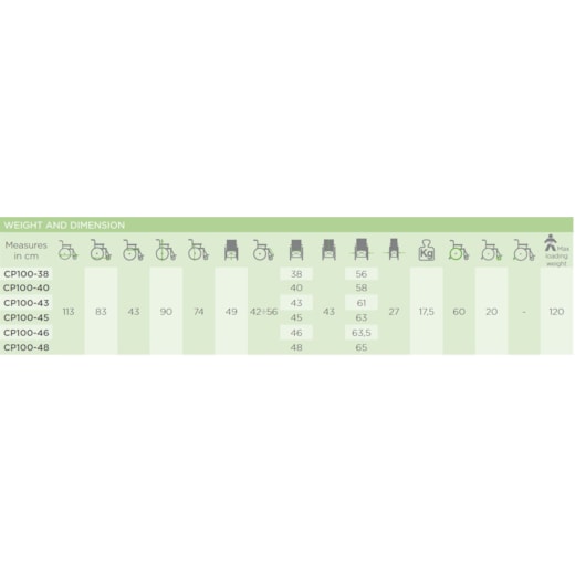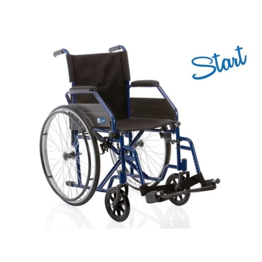 Estrutura em Aço. Peso cadeira: 17,5kg; Peso Máximo do utente: 120kg Estrutura em aço pintado estabilizador, barra transversal única. Assento em nylon preto acolchoado com 45 cm de largura (testado para reação ao fogo de acordo com a norma EN 1021-1/2) e lavável, com bolso para documentos na parte traseira.; Rodas dianteiras em PVC; Rodas traseiras em aluminio e pneus em PU preto (sem camara inferior) e corrimão de aço pintado a preto; Apoio de braços curtos dobráveis com estofo em nylon preto. Apoio de pés removíveis ajustáveis com comprimento, com apoio para os pés em polipropileno preto e correia de calcanhar.