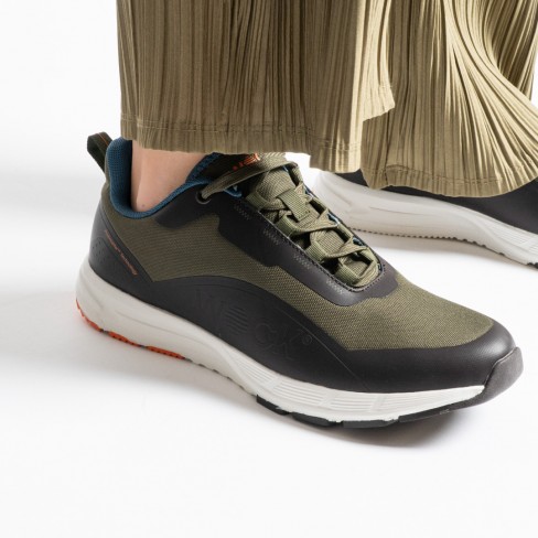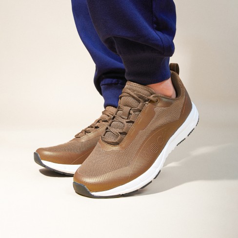 Para uma manutenção adequada do calçado, remove suavemente a sujidade com uma escova macia. Limpa outras manchas usando uma esponja ou um pano humedecido numa mistura de água e algumas gotas de sabão de roupa ou sabão neutro e enxagua com água. Deixa secar à sombra, num local ventilado, afastado de fontes de calor. Retira as palmilhas para as deixar arejar. Não lavar na máquina. A vida útil do modelo depende de fatores como o piso, horas de uso, peso do utilizador, condições de lavagem, etc. Recomendamos o uso com meias.