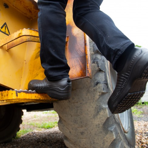 A sola foi desenhada para reduzir o risco de escorregamento em pisos com gorduras e humidos.